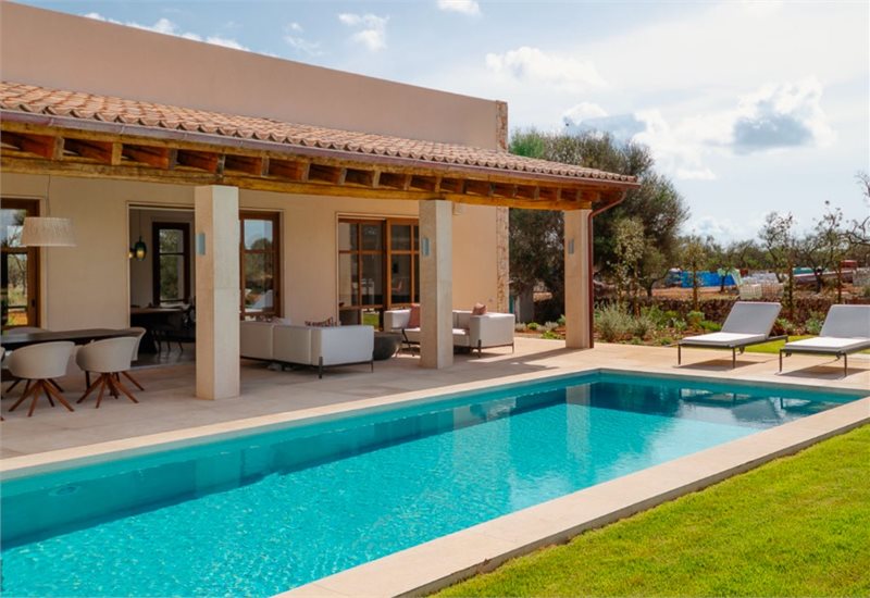 Fantastic newly built finca, overlooking the landscape, the pool and the garden. Situated in southern Mallorca. Within walking distance to local nature and walking paths. Close to walking paths, restaurants, shops, the bakery and the local weekly market. Picturesque area ideal if you want to live close to a town. The property is located on the outskirts of the charming village of Santanyi.